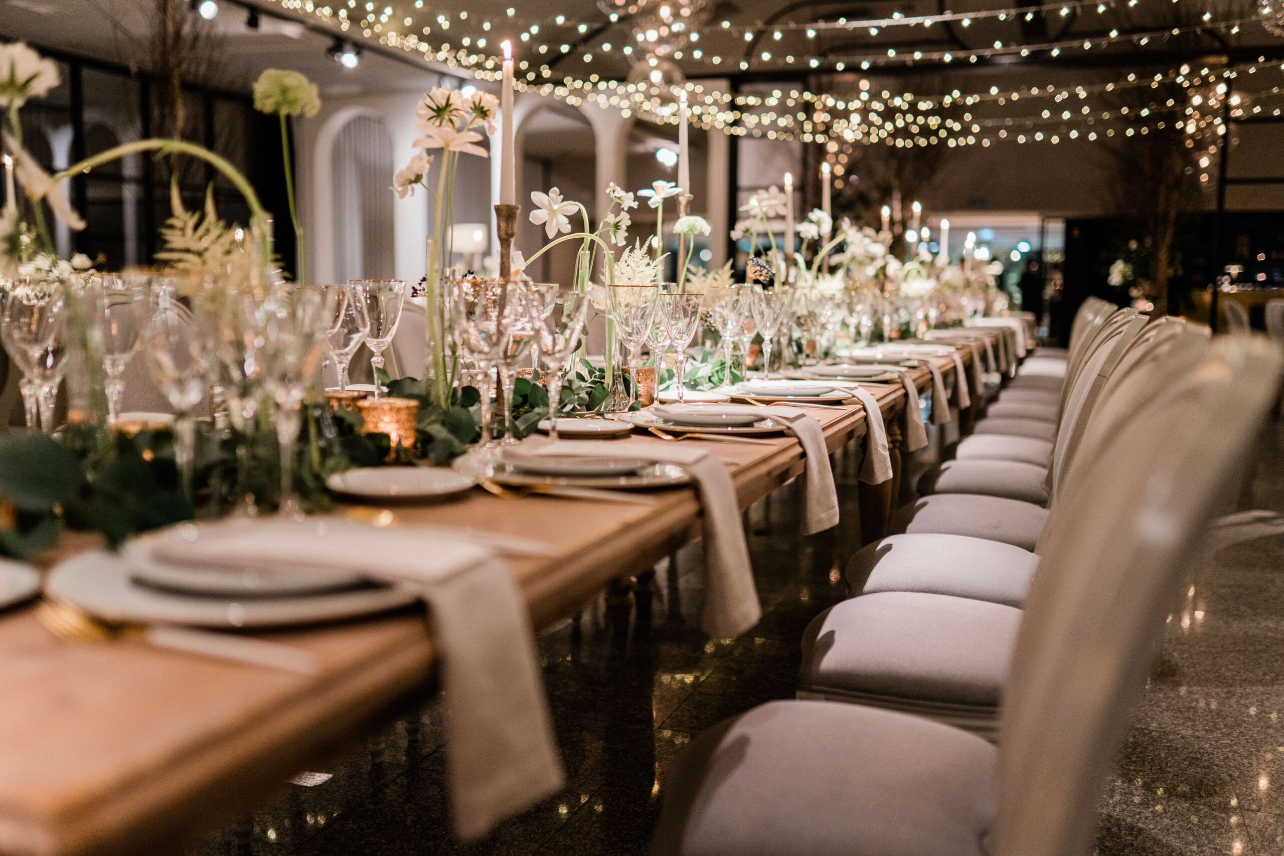 A decoração na quinta é estilo moderno mas com pormenores decorativos que vão de encontro ao gosto dos noivos, proporcionando ambientes especiais.